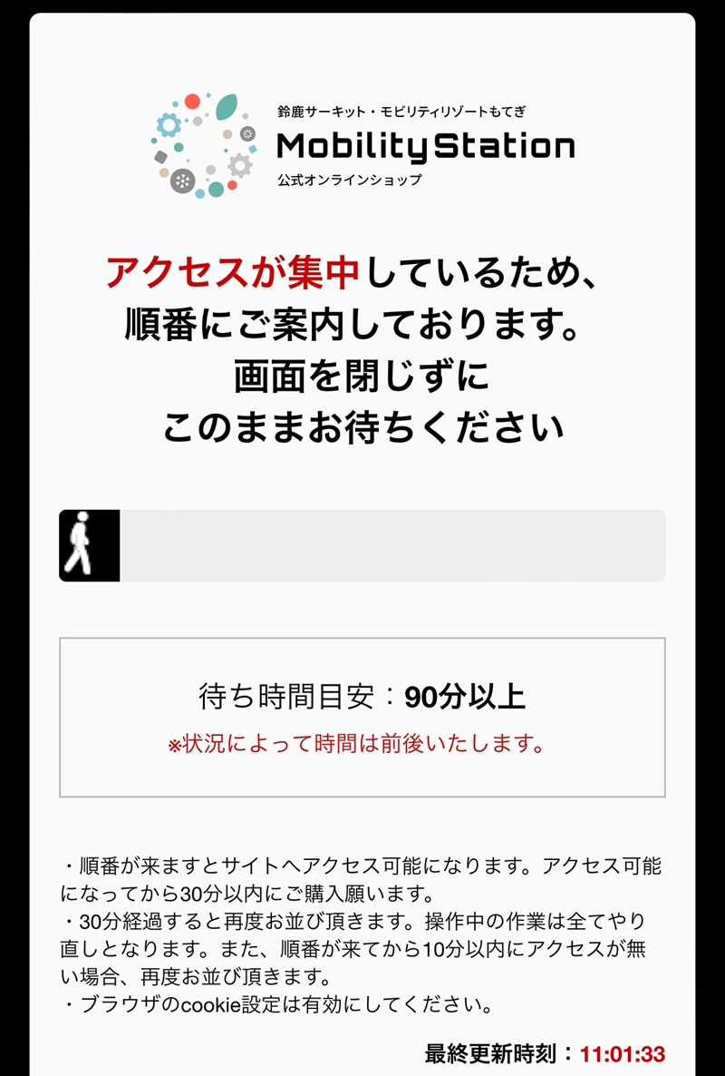 2023年からチケット購入時に導入された、「仮想待合室システム」。