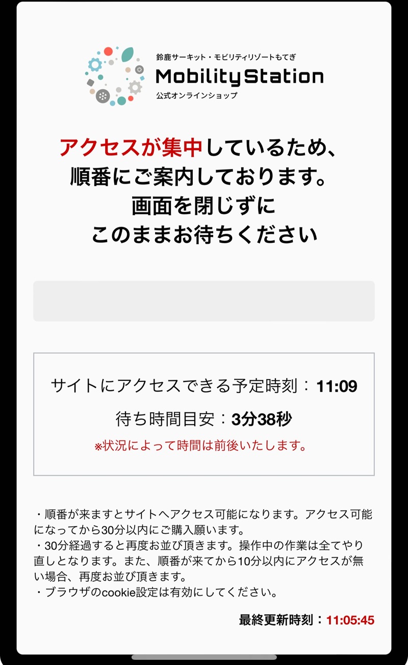 その後ほぼ表示時間通り、11時10分ごろに管理人は入場できました。