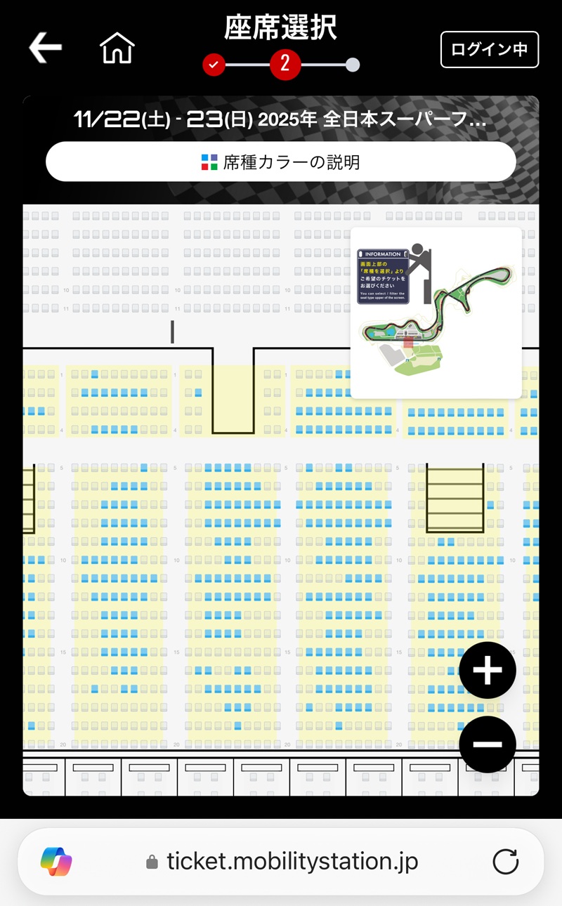 管理人の結果は、第3希望の「B2-3席 Sブロック 通路側席」を確保できました!