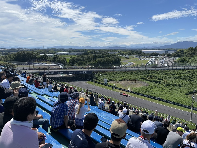 130R側からはF1マシンの後ろ姿がメインの観戦となります、このあたりも動画でご確認ください。