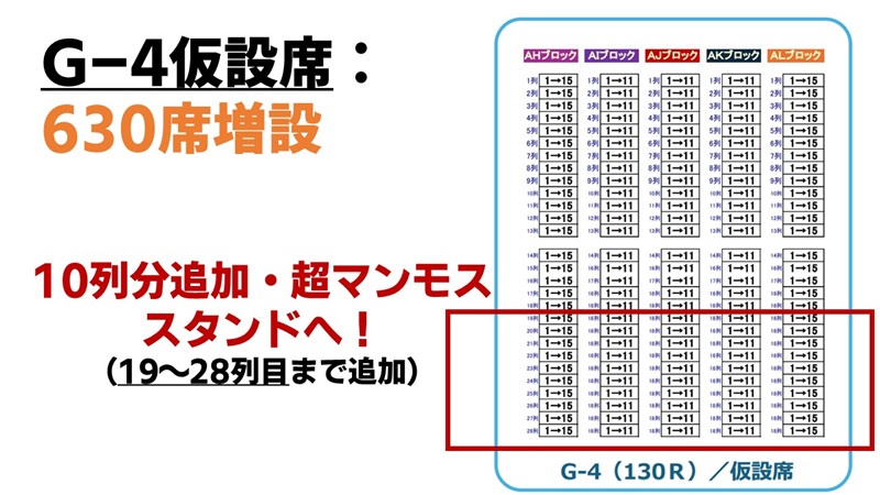 立体交差側 指定席化(G-2 常設席/G-5 仮設席)