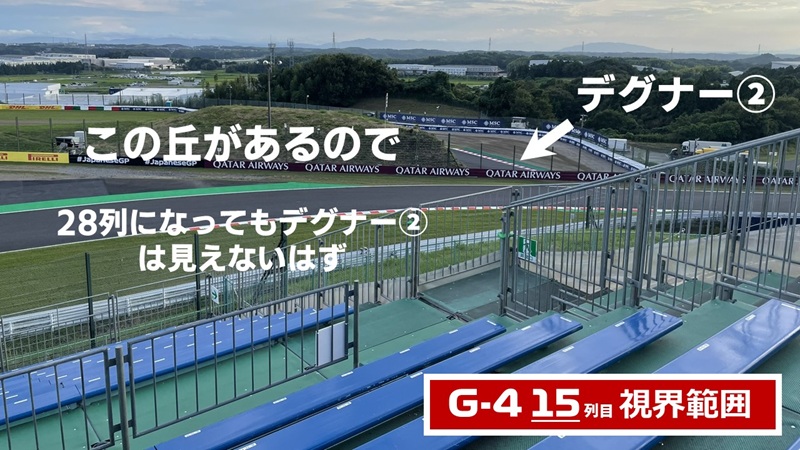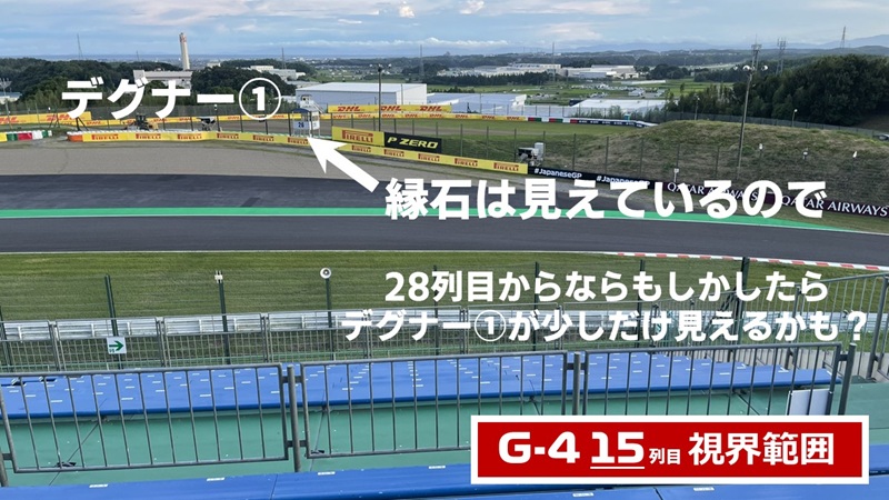 最後列の28列目となると、もしかしてもしかしたら、少しだけデグナー①を走行するF1マシンが見えるかもですね!