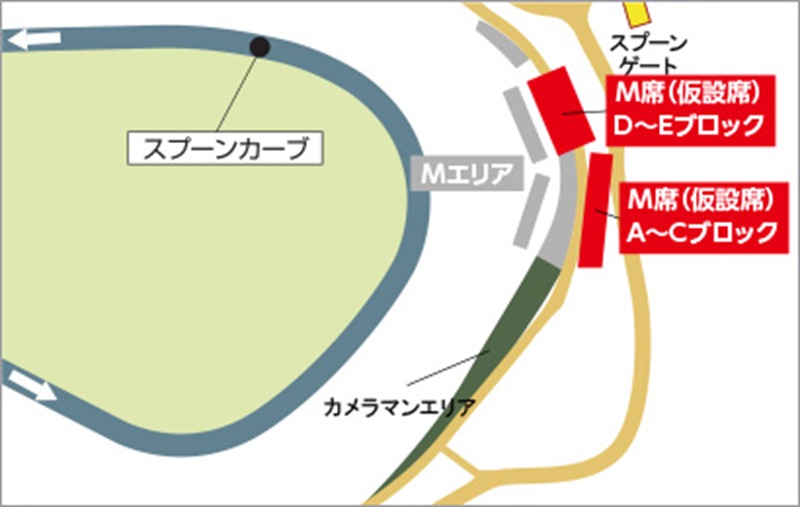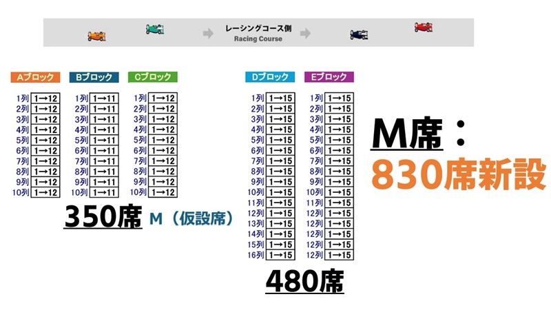 新設のM席ですが、スプーンカーブには2014年まで指定席が設置されていたので。
