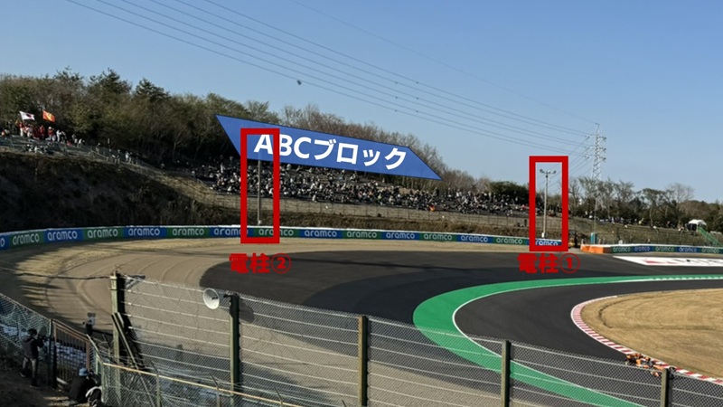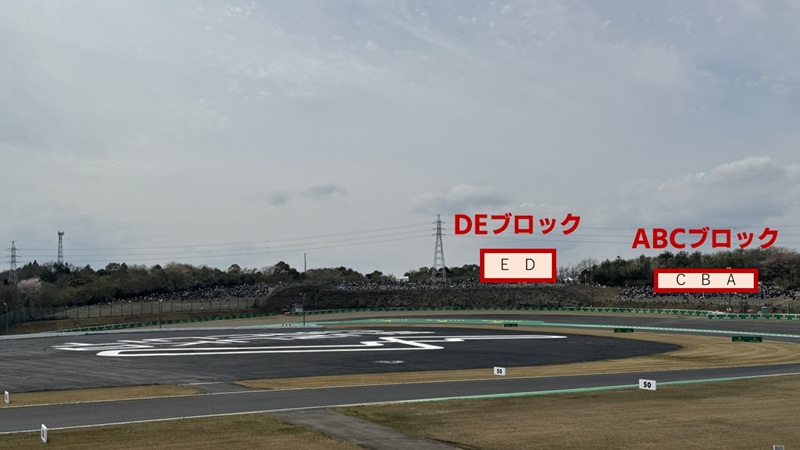 でも見える範囲は両ブロックでほぼ差がなく、どちらもスプーンカーブ入り口から出口までキレイに見えるでしょう。