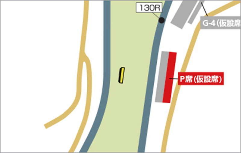 - 130R出口からシケイン進入までを、観ることができるエリア。