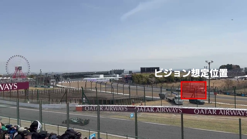 - 両視界ともF1マシンは高速で通過するため、可視時間は意外に短い。