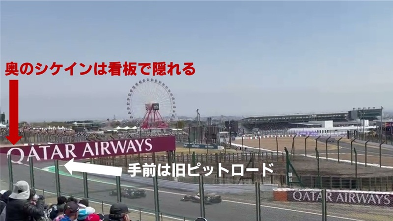 手前は旧ピットロードです、2022年にラティフィ選手がシケインと間違えた道です(笑)