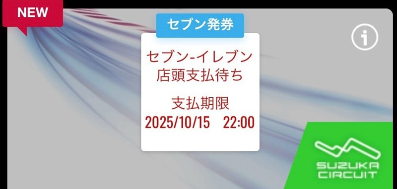 F1日本グランプリの各種チケット、セブン-イレブン店頭発券・支払いの期限は購入日の2日後の22:00までです。
