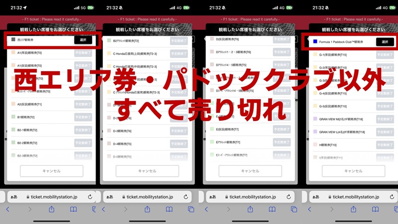 事前状況:西エリア・パドッククラブ以外すべて売り切れ