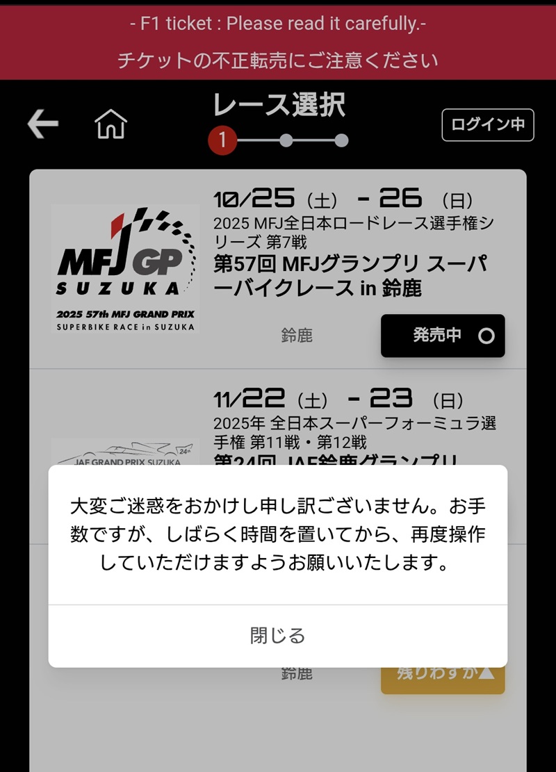管理人はすでにチケット確保済なので、本当に欲しい方の邪魔にならないようにアクセスを切って様子をみることにしました。