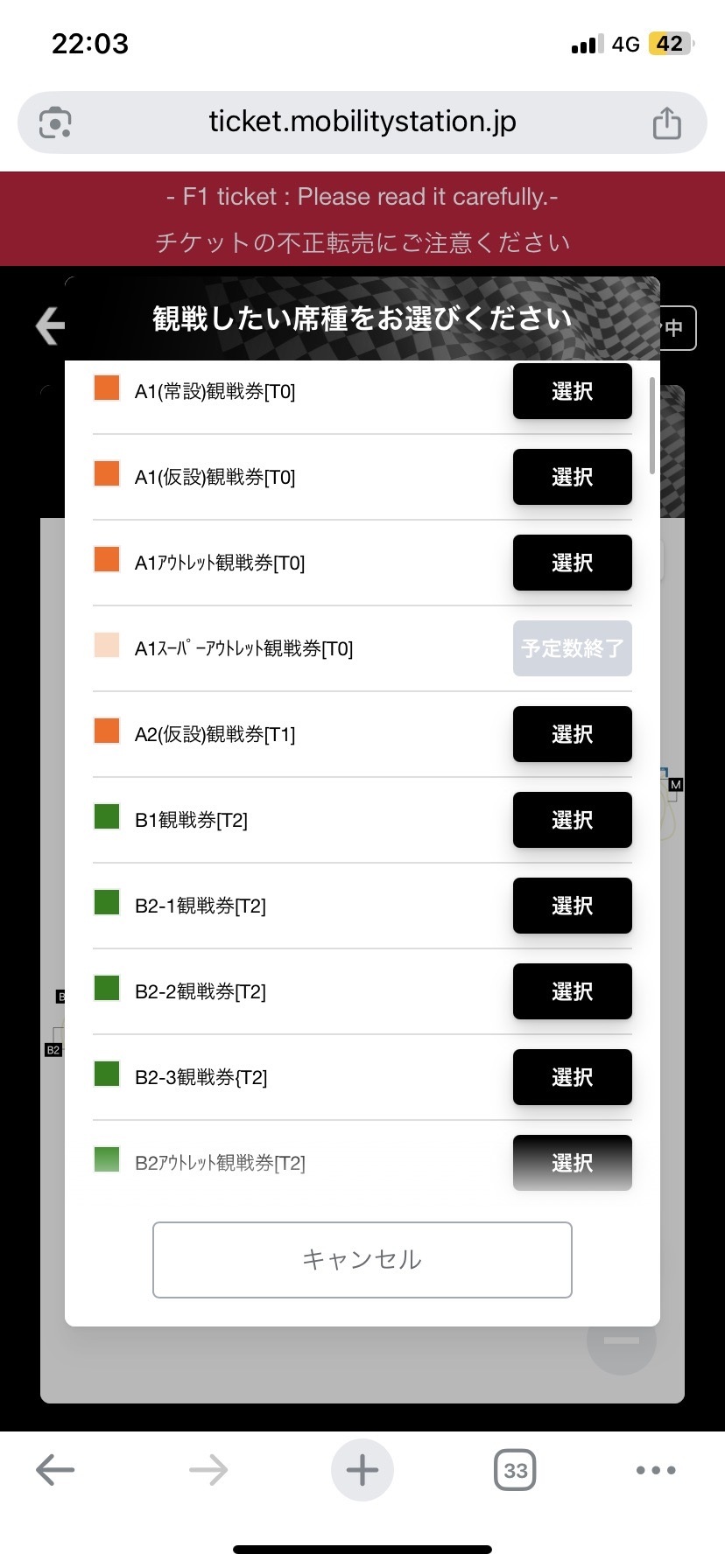 それでもこのように、大半の観戦席で在庫が復活し選択可能状態でした。