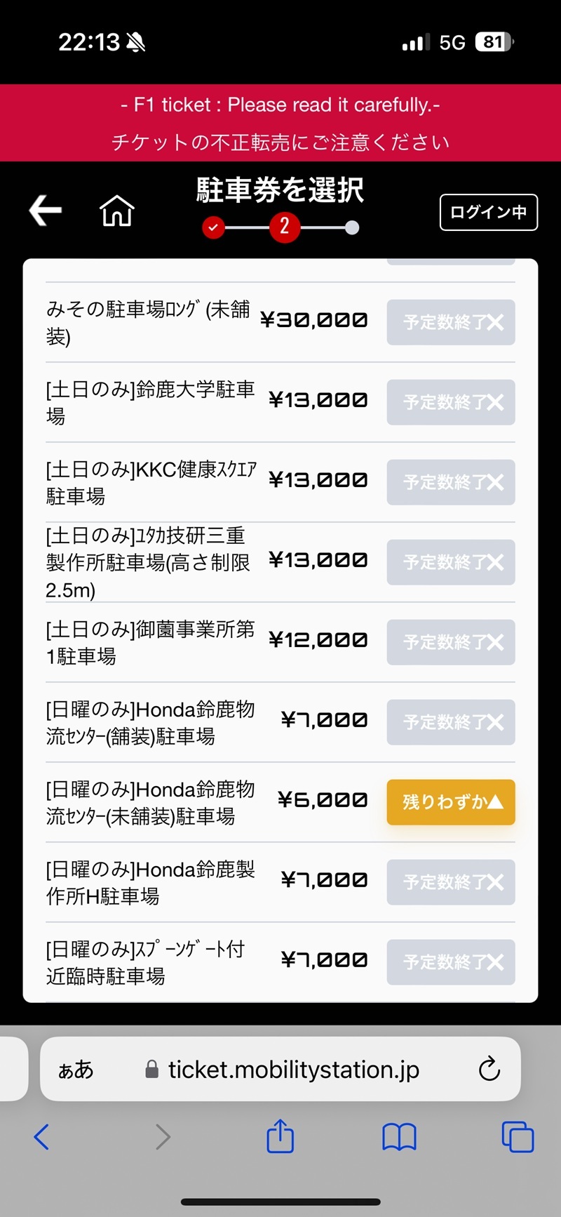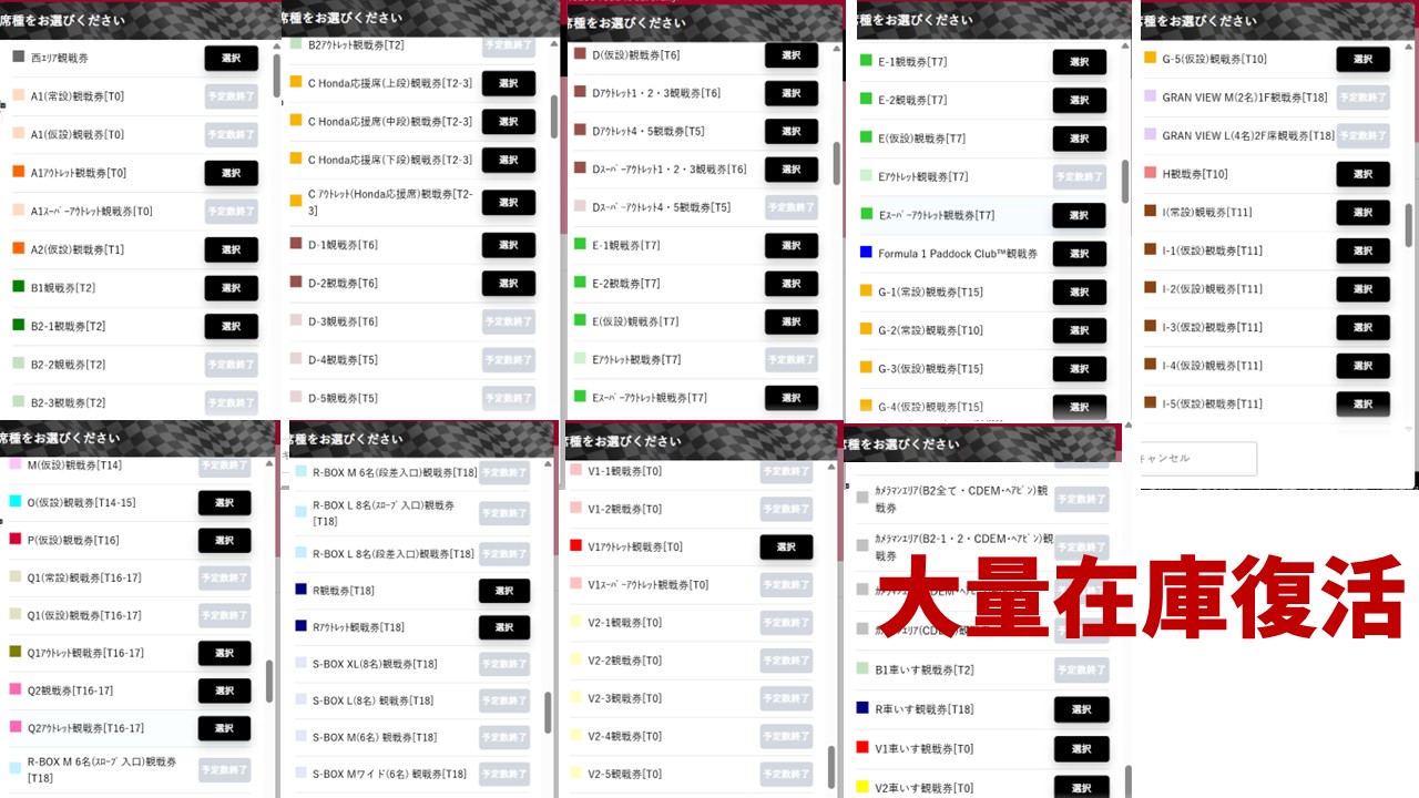 以上、【2026年 F1日本GP鈴鹿】人気席&駐車券 在庫復活の記録についてでした!