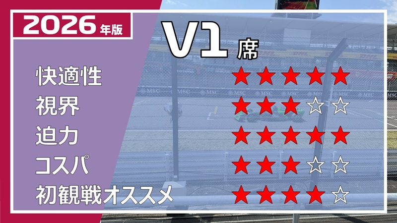 では第16回は、グランドスタンド下段でスタートやオーバーテイクの大迫力も楽しめるV1席のレビューです!