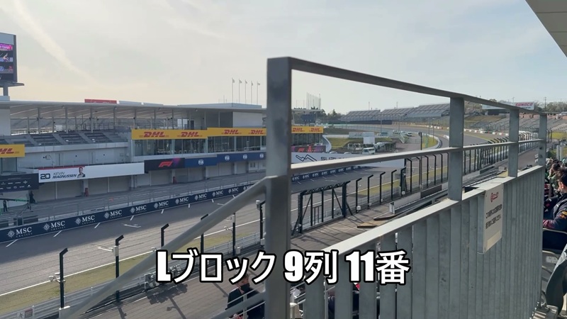 2024年のピレリタイヤテストにて、全ブロック分のこの該当席の視界を撮影しました(笑)