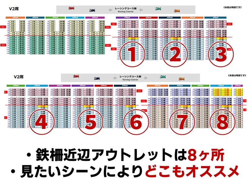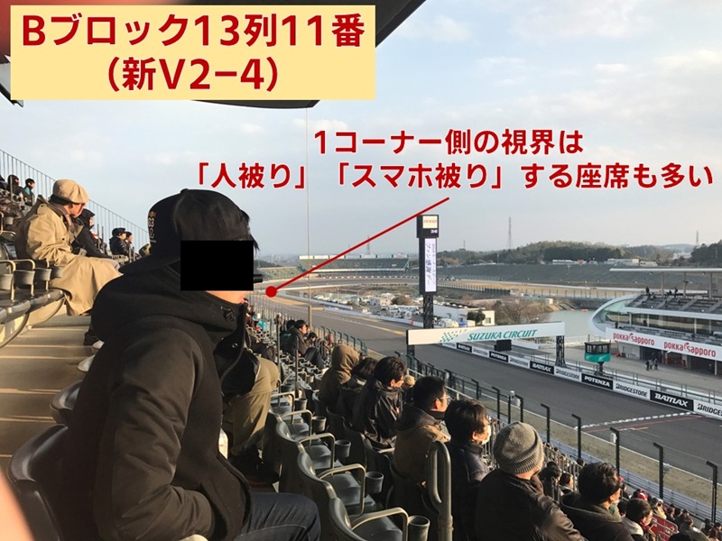 - 1コーナー方面は、満員の予選や決勝では人被り・スマホ被り視界が想定される