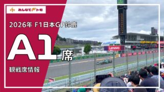 鈴鹿 観戦席ガイド 【2026年 F1日本GP鈴鹿】A1席 詳細ガイド 鈴鹿サーキット全20観戦席ごとに、F1走行ビューやオススメ席、視界を遮る金網・電柱などの詳細情報をレビューします。第18回は、常設席ではド迫力、仮設席では広範囲視界が楽しめるA1席です!当サイトでは2022年から毎年、鈴鹿サーキット全観戦席... 2025.10.10 鈴鹿 観戦席ガイド