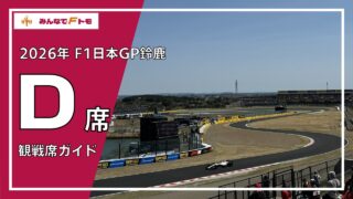 鈴鹿 観戦席ガイド 【2026年 F1日本GP鈴鹿】D席 詳細ガイド 鈴鹿サーキット全20観戦席ごとに、F1走行ビューやオススメ席、視界を遮る金網・電柱などの詳細情報をレビューします。第3回は場所によっていろんな視界が楽しめる、初心者にもオススメD席です!当サイトでは2022年から毎年、鈴鹿サーキット全観戦席... 2025.09.30 鈴鹿 観戦席ガイド