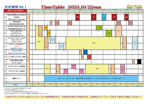 CiaoItalia2022 Supported by DUNLOP10/30sunタイムスケジュール TimeSchedule【PDF】 ファミリーランのCORSAクラスへの申し込みが多数の為、3つのグループに分けさせて頂きます。午後から...