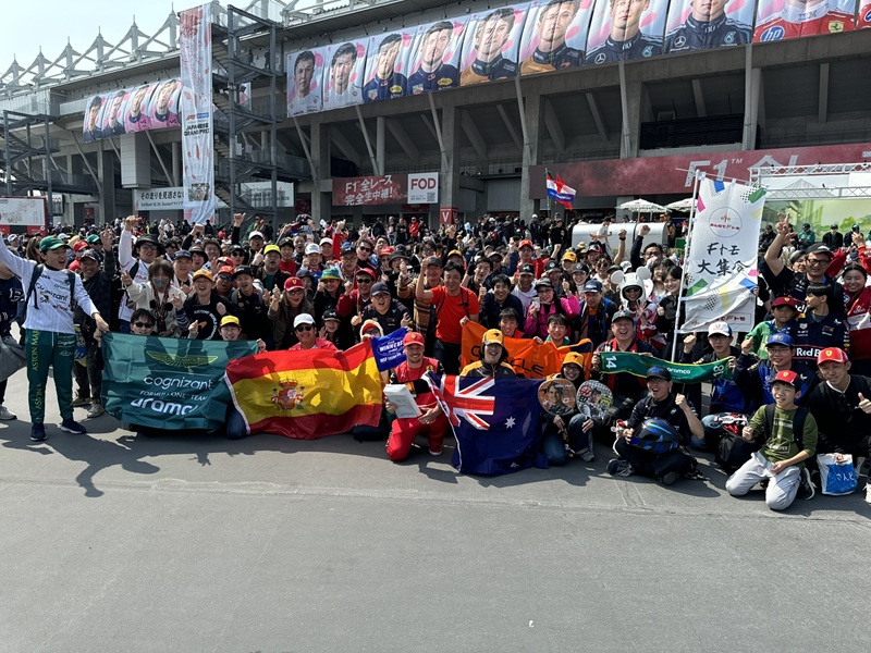 こちら参加者交流の一例ですが、2026年F1日本GP鈴鹿での参加者との記念撮影です。